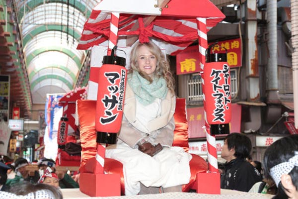 今宮戎の宝恵駕籠には、「前年話題になった人物枠」があり、2015年はNHK朝ドラ「マッサン」エリー役のシャーロット・ケイト・フォックスさんが登場した。