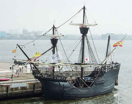 初の世界一周を果たしスペインに帰港したビクトリア号(復元)