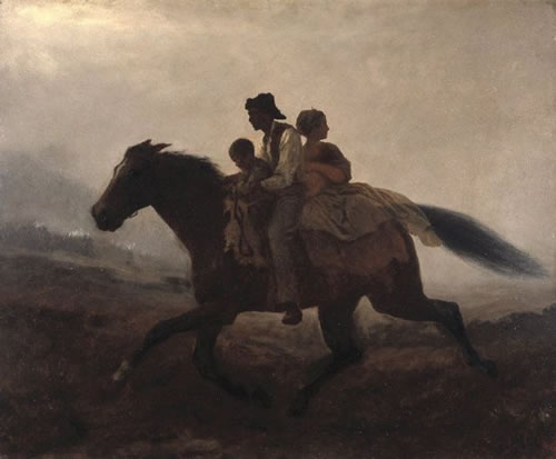 開戦前後、南部州のアフリカ系労働者達の間には、自由な北部州への脱走を試みる動きが広がっており、これを助ける秘密組織「地下鉄道 Underground Railroad」が彼らの逃亡成功に大きな役割を果たしていた。下の挿絵は、北部州へ脱出する南部のアフリカ系労働者家族を描いた油絵。