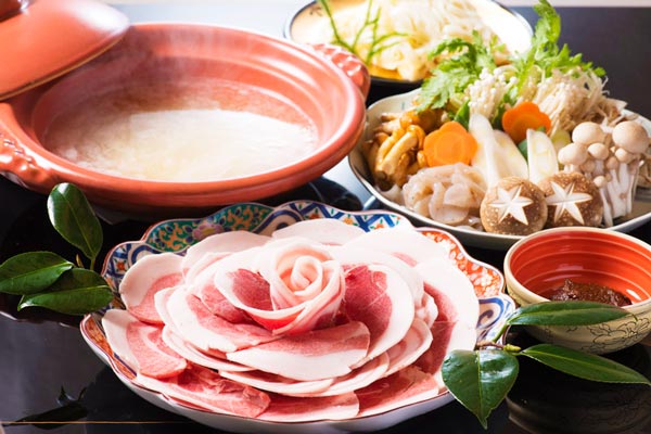 下の画像は、 福井県の料理旅館「南川荘」Webサイトから引用した牡丹鍋の写真。特製の山椒味噌で味わう名物料理とのこと。