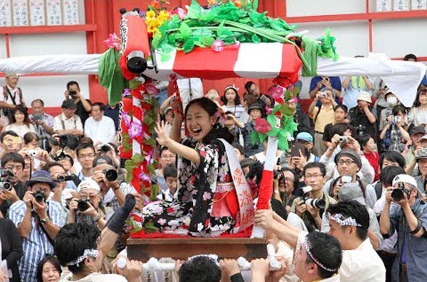 写真:愛染まつり 宝恵駕籠パレード(2017年/出典:YouTube)