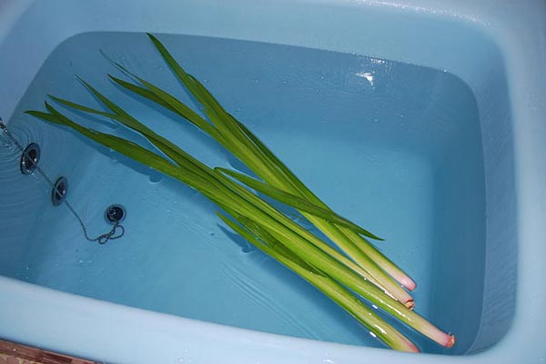 菖蒲湯の作り方としては、買ってきた葉菖蒲を水洗いしてそのまま丸ごと入れるやり方と、ある程度の長さに刻んでネットなどに入れてから湯につける場合があるようだ。