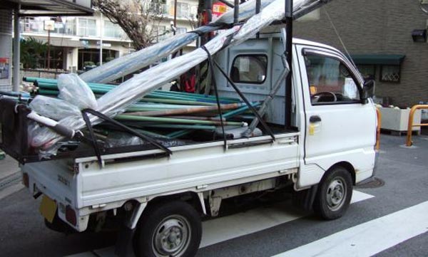 「たーけやー、さーおだけー♪」の物売り声で知られる竿竹屋(さおだけ屋)の移動販売車。「2本で千円、20年前のお値段です」などの売り文句で高齢者の多く住む地域や団地などを巡回しているがトラブルも多い。