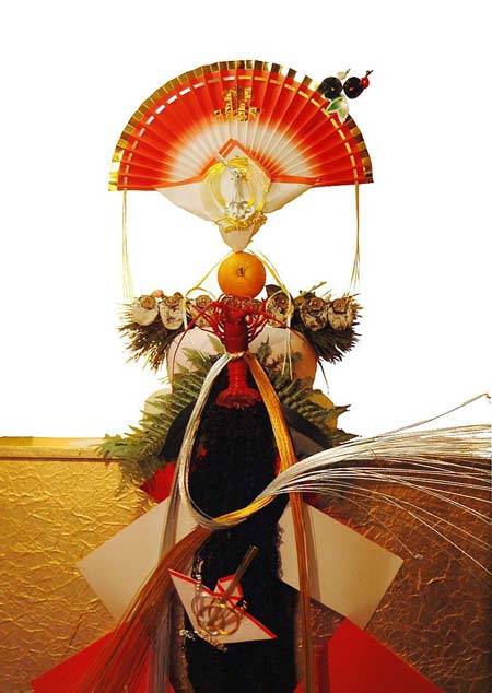 現代日本の一般家庭における鏡餅は、二段のお餅の上にダイダイ(みかん)というシンプルな構成のものが一般的だが、伝統的な飾り付けとしては、次のような数々のお飾りが用いられてきた。その意味合いも含めて列挙してみた。
