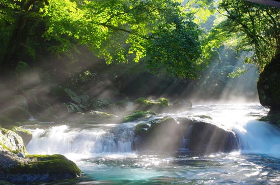 しぶきを上げて流れていく川の荒々しい流れが、スピード感あふれるメロディーに乗せてシリアスに描写される。中学校の合唱コンクール定番曲。