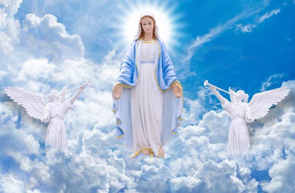 最初の4行はルカによる福音書からとられ、特に最初の2行は、大天使ガブリエルによる「受胎告知」のシーンにおける聖母マリアへの挨拶として有名。