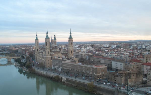 写真は、アラゴン州サラゴサ(Zaragoza)のヌエストラ・セニョーラ・デル・ピラール聖堂とエブロ川。