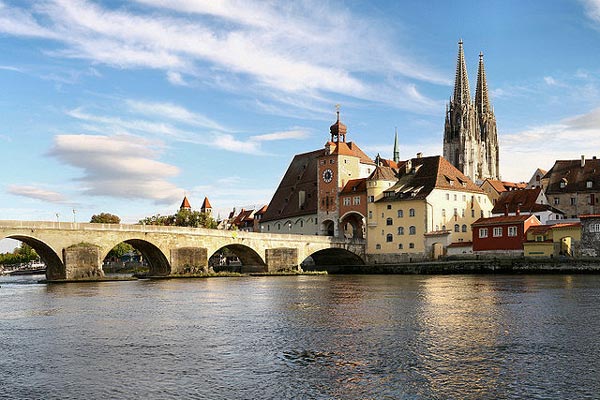 写真:ドナウ川とレーゲンスブルク大聖堂(ドイツ世界遺産)