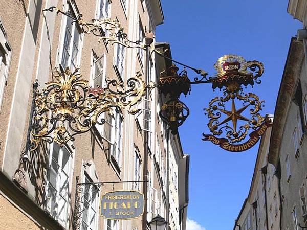 写真:モーツァルト生誕の地ザルツブルクのゲトライデ通り(Getreidegasse)