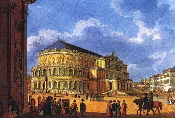 上挿絵は、歌劇「タンホイザー」が初演されたドレスデンのオペラ劇場。当時はザクセン王国の宮廷歌劇場であり、ワーグナーが1843年から1849年まで指揮者を務めていた。