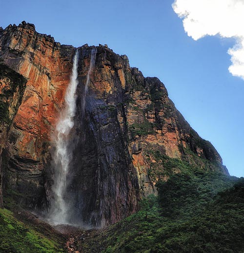 写真:ベネズエラのカナイマ国立公園内にあるエンジェルフォール。世界最大の落差(979 m)を誇る。「天使の滝」と訳すと幻想的だが、実際には発見者である探検家ジミー・エンジェルの名前から命名されている。