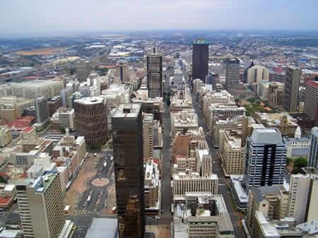ヨハネスブルグ(下写真)は証券取引所JSEの所在地としても知られ、アフリカ有数の金融センターとして南アフリカ経済の一翼を担っている。