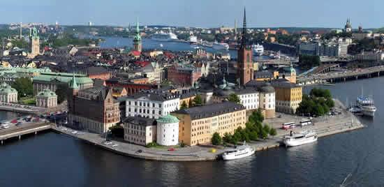 首都はストックホルム(Stockholm)。13世紀、スターズホルメン島(スタツホルメン島/Stadsholmen)に築かれた砦から街が形成され、島の周囲に丸太の柵が設けられたことから、スウェーデン語で「丸太の小島」を意味する「ストックホルム」と命名された。「水の都」、「北欧のヴェネツィア」と称賛される。