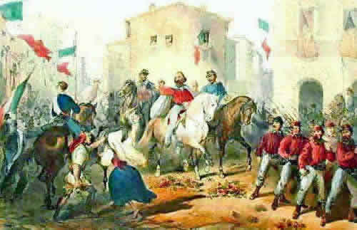 上挿絵:民衆から大歓迎を受けるガリバルディ隊