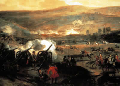 両軍の争いに事実上の決着がつくのは1690年7月のこと。しびれを切らしたウィリアム3世が自らアイルランドに上陸。36,000のイングランド・オランダ連合軍を率いて、ボイン川(The River Boyne)河畔でジェームズ2世率いる抵抗軍に壊滅的打撃を与え敗走させた。