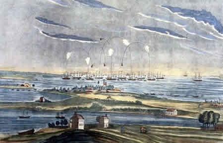 図:イギリス艦隊から艦砲射撃を受けるマクヘンリー砦