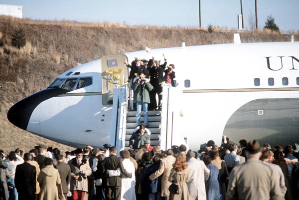写真:帰還する人質らと黄色いリボン(出典:wikipedia)