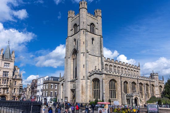 キングス・パレード(通り)をはさんでキングス・カレッジ(King's College)のすぐ北側に位置するグレート・セント・メアリー教会。