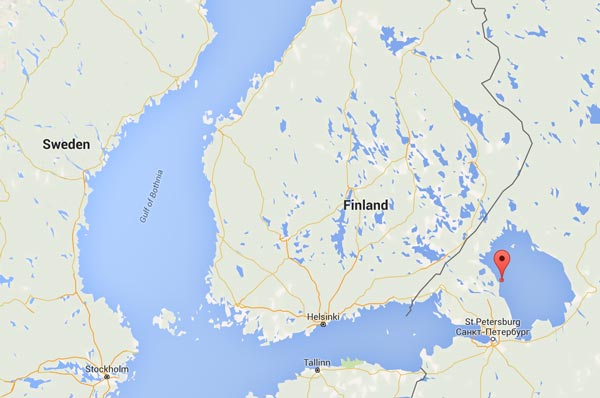 上画像(Google Mapsより)の赤いポインタ部分がコネヴェツ島の位置。島全体をコネヴェツ修道院が管理しており、許可なく立ち入ることはできない。