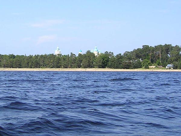 湖上から見たコネヴェツ島とコネヴェツ修道院。