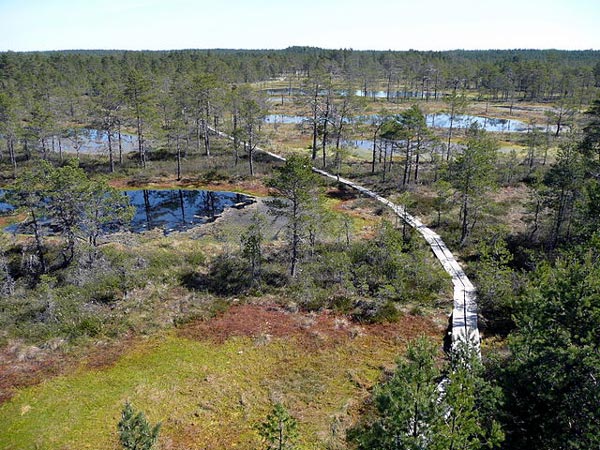写真はエストニア北部のラヘマー国立公園(Lahemaa National Park)。沼地(ボグ)が一面に広がっている。
