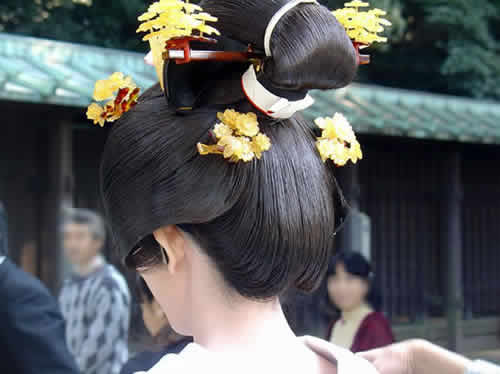 花嫁御寮(はなよめごりょう)は なぜ泣くのだろ文金島田(ぶんきんしまだ)に 髪(かみ)結(ゆ)いながら