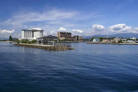 2番から3番は、琵琶湖西岸を北上する形で、雄松崎(近江舞子の浜)、今津、長浜と続き、4番で琵琶湖の北部に浮かぶ竹生島(ちくぶしま)が登場する(下の写真は長浜港)。