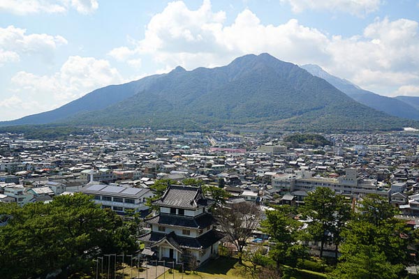 写真:島原城天守より西・雲仙方面を臨む(出典:Wikipedia)