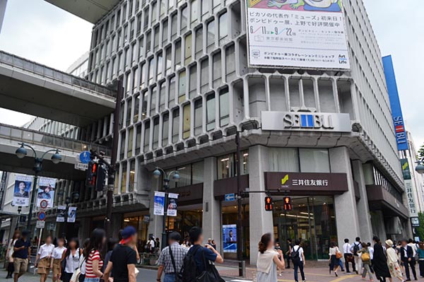 これは、A館とB館を隔てる井の頭通りの下に、コンクリートの蓋で暗渠(あんきょ)化された宇田川が流れているからだ(写真:西武百貨店渋谷店A館とB館)。