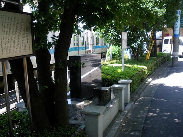 河骨川は宇田川の上流にあたり、小田急線の代々木八幡駅付近の線路沿いには、『春の小川』の歌碑が建てられている(下写真)。渋谷のNHKホールから歩いていける。