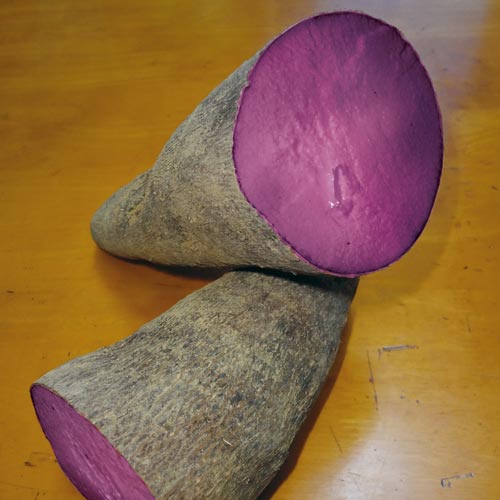 紅芋はダイジョ(大薯、ダイショ)と呼ばれ、オキナワヤマイモ(沖縄山芋)、ベニヤマイモ(紅山芋)などの名称でも知られる。紫色の色素はポリフェノールのアントシアニン。
