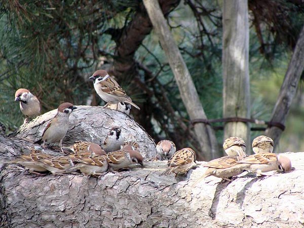 写真:群れで採餌中のスズメ(出典:Wikipedia)