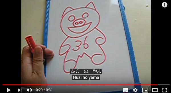 腕と手の部分を「6(ろく)」で表現するのは、絵描き歌『かわいいコックさん(棒が一本あったとさ)』と同じだが、掛け算の6×6=36(ろくろく さんじゅうろく)まで絵に書き込む点がユニーク。