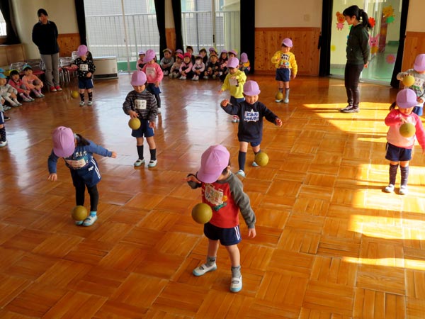写真:幼稚園児のまりつき(出典:明愛幼稚園Webサイト)