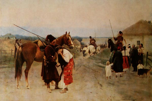 歌詞では、戦場に赴くコサック兵と残された彼女のつらい別れが描かれている。18世紀頃に活躍したウクライナの詩人による詩に基づいているという。