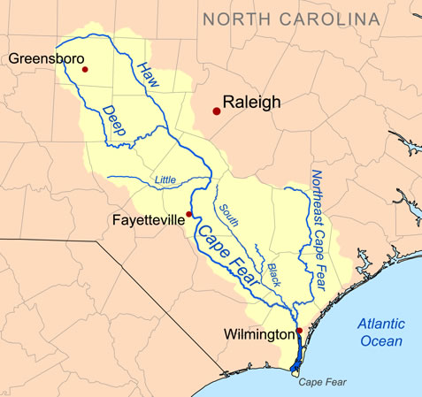 全長は約125マイル(約200km)で、ケープ・フィア川(the Cape Fear River)に合流して大西洋へ注ぐ。近隣には「Deep River Park ディープ・リヴァー公園」も整備されている。