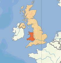 グレートブリテン島の地図とウェールズ(赤い部分)